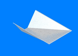 - With a metal straightedge, bend the aluminum where the pattern indicates "crease". Place the wide end of this aluminum piece centered over the narrow end of the wooden trapezoid and form the aluminum to it's final shape. For a visualization of what that shape should be, click and drag on the image to the right.